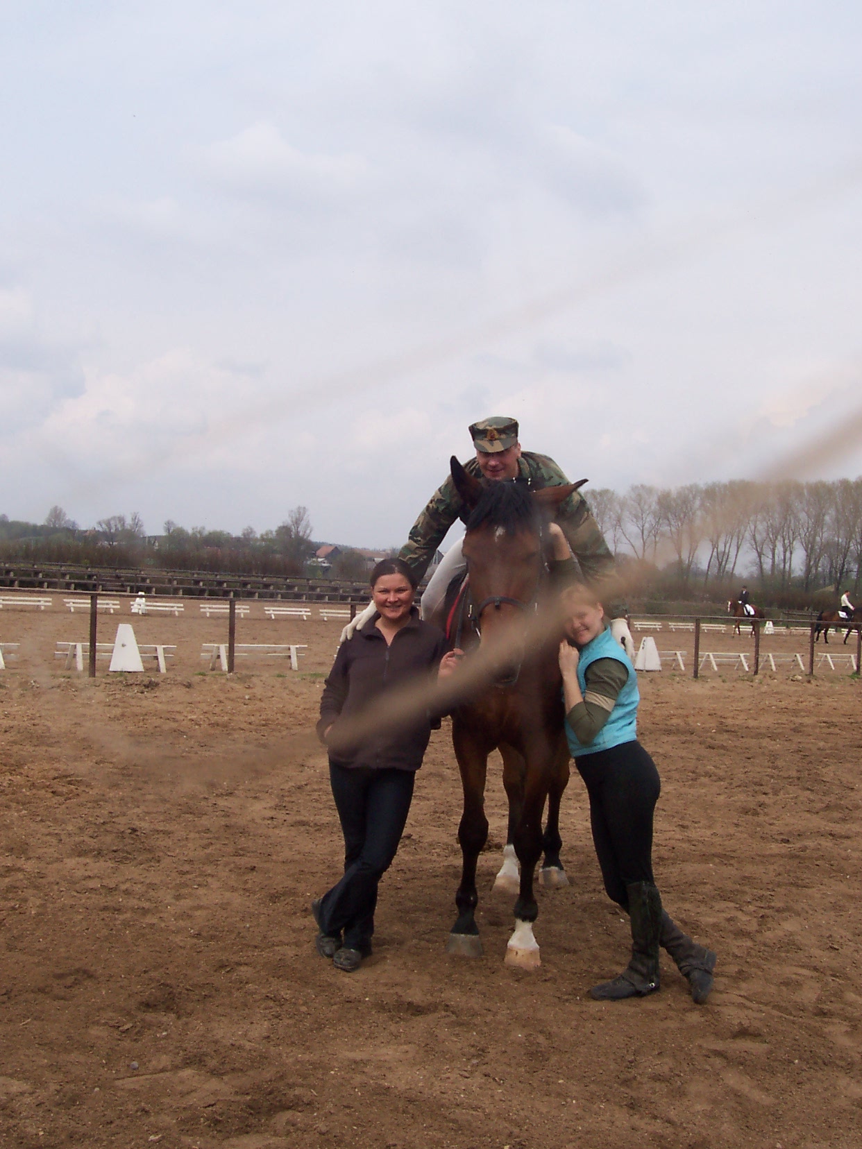 Korina and Žana outside the manege