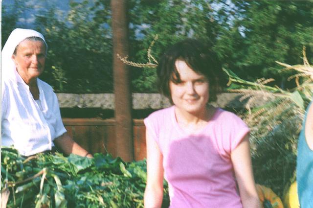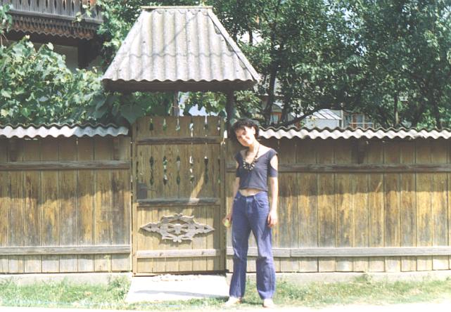 - Inna posing by traditional fence and gates out of ornamented wood